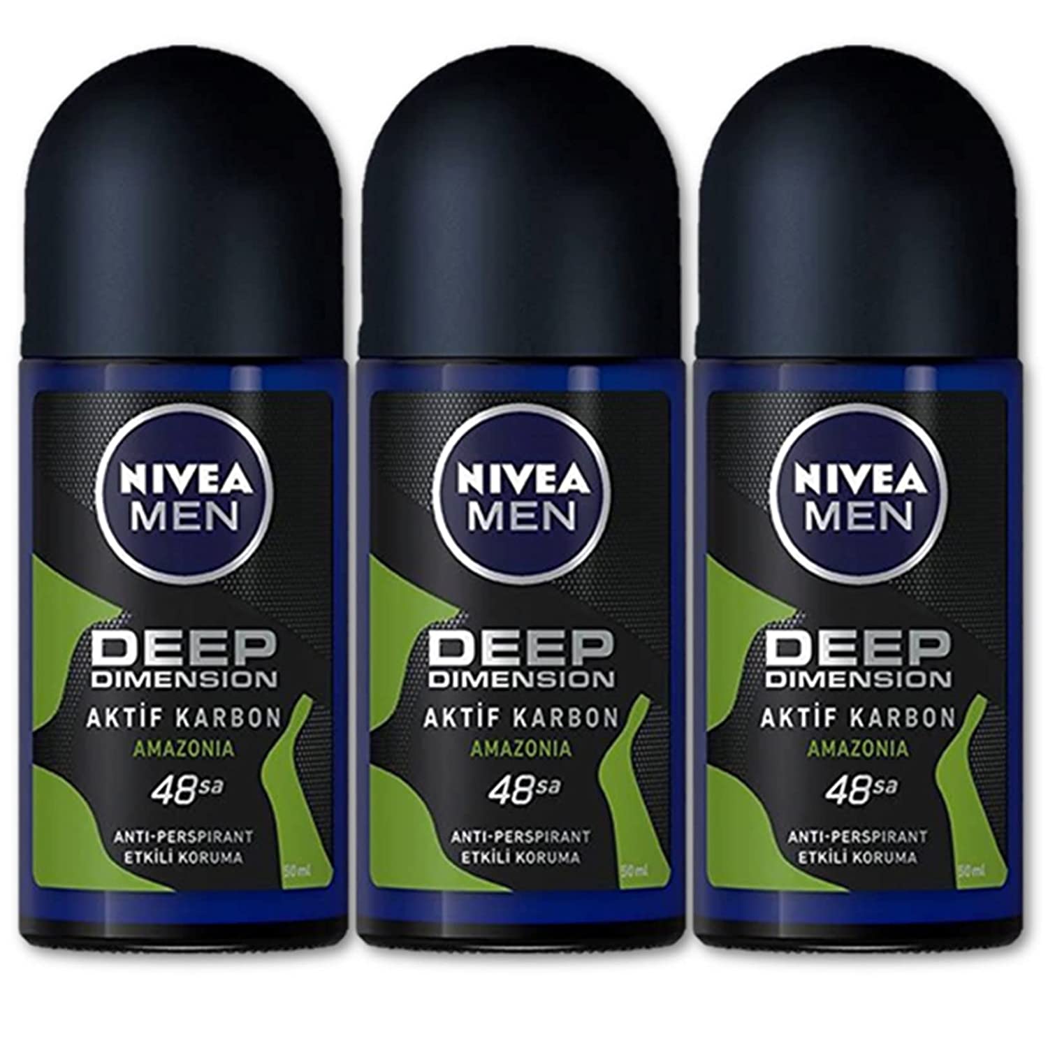 Nivea For Men Deodorant Roll-On Dimension - Amazonia, Anti Perspirant, 48h 1.7oz/50ml (Pack of 3 ) (Amazonia)